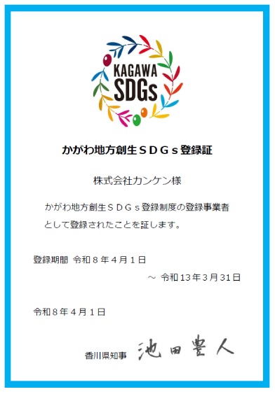 Uncategorized かがわ地方創生SDGsに更新登録されました 2026-03-31 by kanken この度、「かがわ地方創生SDGs」の登録を更新しました。今後も引き続き、弊社はSDGsの達成に向けて取り組みを進めてまいります。 SDGsへの取り組みはこちら kanken